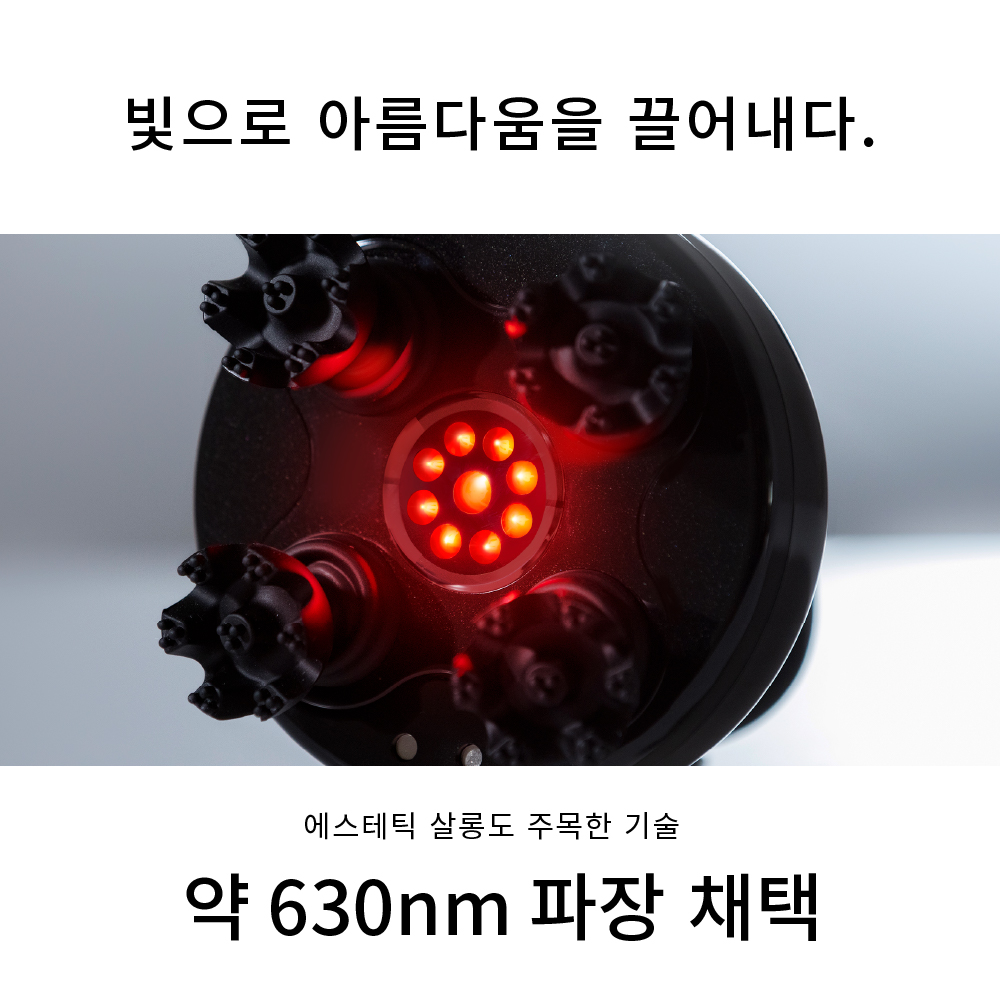 특히 미용에 효과적인 630nm 부근의 파장을 고출력으로 조사하여 아름다운 피부 케어를 선사합니다.