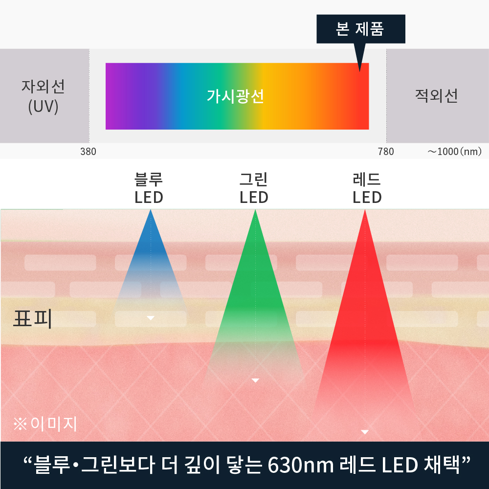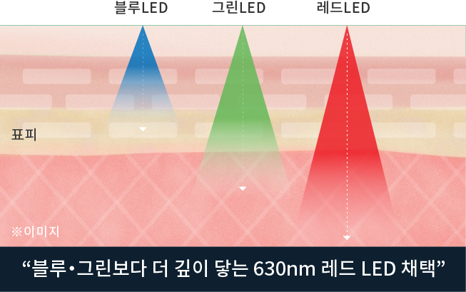 LED는 빛의 색에 따라 피부에 닿는 깊이가 다릅니다.