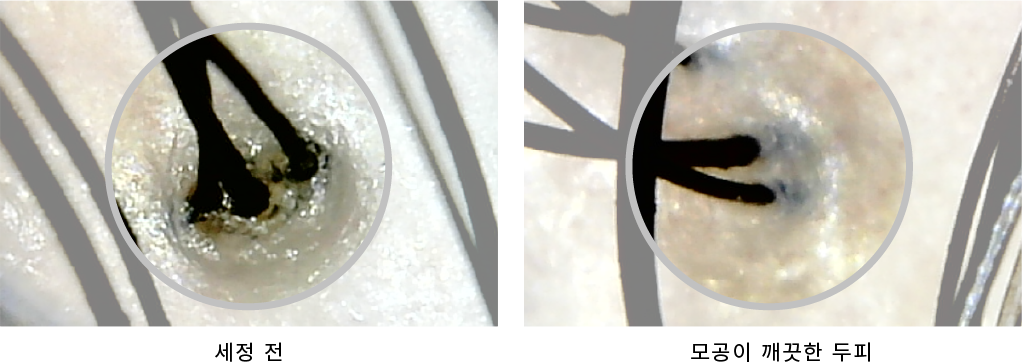 ※ 눈가, 입가, 코, 귀, 목젖 부위에는 사용하지 마십시오.