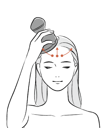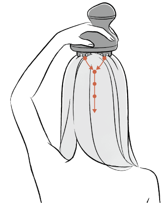 모근에 약 5초간 대고 난 뒤, 정수리 방향으로 5초간 천천히 이동.