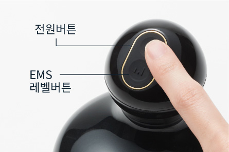 전원 버튼을 길게 눌러 ON, 회전 속도를 선택한 뒤 EMS 레벨 버튼으로 원하는 자극 레벨을 설정합니다. 종료 시에도 전원 버튼을 길게 눌러 OFF 합니다. -